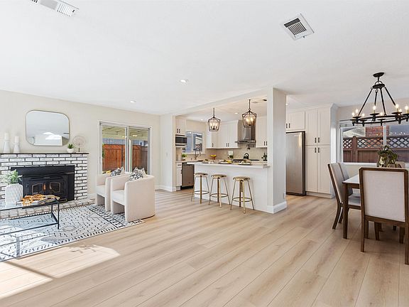 EAST FACING! This charming home welcomes you with fresh new exterior and interior paint, setting the stage for a beautifully renovated interior. Inside, you'll be greeted by brand new luxury vinyl oak flooring that gives the space a bright and modern feel. The heart of the home, a brand new updated kitchen, boasts stainless steel appliances, white shaker cabinets, and sleek countertops, making it a perfect spot for culinary adventures. Each of the four bedrooms offers a cozy retreat with ample natural light, while the two bathrooms have been tastefully updated. Spanning 1305 square feet, this residence provides comfortable living spaces that cater to relaxation and entertainment. Outside, the well-manicured lawn adds to the curb appeal, and the inviting backyard, complete with a sparkling pool, offers an oasis for outdoor enjoyment. With its thoughtful updates and convenient amenities, this home is a true gem, ready to provide a warm and stylish living experience.