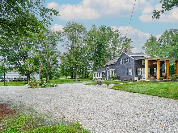 Beautifully renovated & ready farmhouse secluded on partially wooded 6.2ac sitting way back off the road. Home features a Stately covered front porch, Awesome 18'x30' 4-seasons rm w/adjacent 18x20 patio. Updates include Brand New Central Air. New roof, siding, windows & plumbing system w/water filter & softener 2022. New bath, kitchen, floors & finishes 2023-24. Home also features a well w/cistern system as back up water source & wood burning stove insert as alternate heat. Other improvements include New 30x40 metal barn/shop/garage with foam insulation, concrete floor plus water & electric w/covered porch. Property also features 12x20 shed, & a fenced Chicken coop. The land is 6.2ac of flat useable ground w/no restrictions with 2ac of woods & 4ac of open ground plus small pond. There is additional 2.4ac building lot out front that could be purchased if desired offering great opportunity for Family wanting an additional home. Great location not far off 71. LM schools.