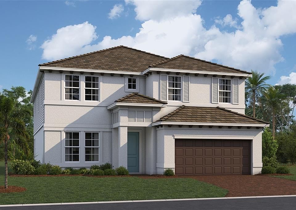 Under Construction. ****SPECIAL FINANCING AVAILABLE FOR A LIMITED TIME ONLY FROM PREFERRED LENDER. RESTRICTIONS APPLY, FOR QUALIFIED BUYERS, SUBJECT TO APPLICABLE TERMS AND CONDITIONS. SUBJECT TO CHANGE WITHOUT NOTICE**** MODEL NOW OPEN! Welcome to the Estero, a two-story home featuring five bedrooms, three bathrooms, and a two-car garage. Encompassing over 3,300 square feet of versatile living space, the main floor offers an open-concept design, with the great room flowing into the café and kitchen. As you step inside, you'll first be greeted by a flex room to one side of the foyer and the laundry room on the other. The foyer leads you directly into the main living space. The kitchen is equipped with a walk-in pantry and a large island. A sliding door opens from the great room to a covered lanai, perfect for outdoor relaxation or entertaining. The first floor also includes a convenient guest bedroom with access to a full pool bath. Upstairs, the owner's suite serves as a luxurious retreat with dual walk-in closets and an expansive owner's bath featuring dual vanities and a separate shower. Two bedrooms upstairs share a full bath, while a fourth bedroom sits at the top of the stairs. A large bonus room offers endless possibilities, whether as a game room, media room, or additional living space. This thoughtfully designed home combines ample storage, flexible spaces, and an open layout.