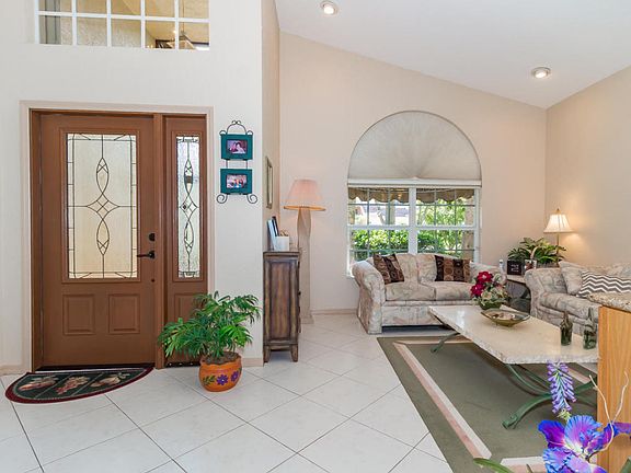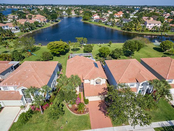 You will be wowed from the moment you walk through the beautiful hurricane impact glass door. Meticulously maintained, this home sits on a premium oversized lot with stunning long lake views. You'll love the soaring ceilings and bright and airy, open floorplan. The family room and beautifully renovated kitchen open to a 39' x 14' covered patio with wet bar, hot water shower and fiber optic lighting all around. Enjoy a game of bocce and then take a dip in the pool. This home is truly perfect for entertaining. Impact windows or accordion shutters all around. Oversized 2-car garage has room for 2 cars and a motorcycle. You'll save on electricity with the whole house solar hot water system. Great schools. Low monthly HOA fee includes recreational facility. See addendum for other features.