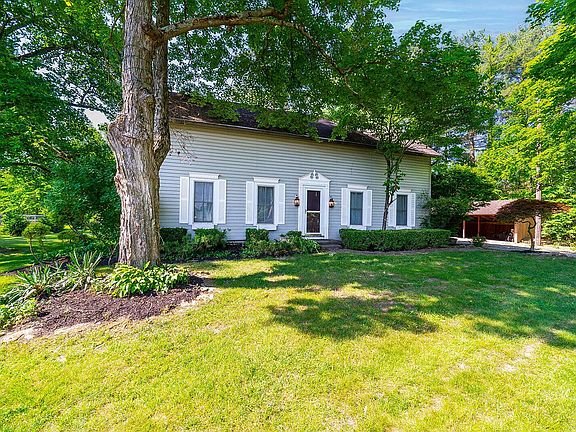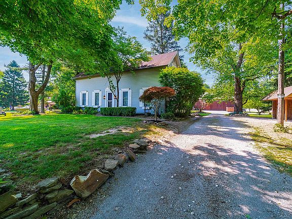 Wow! Two living spaces and approx 2 wooded acres. The 1860's home boasts hdwd floors, large kitchen, parlor, family room, den, 1st floor laundry, and master suite with full priv bath! 2 nice sized bdrms and bath on 2nd level. Property also offers a gigantic Amish hand hune barn with a large carriage house (teen/in law suite, rental/air bnb, office/studio). Upper level bedroom loft, 1st floor bedroom, vltd & beamed great room, kitchen, and full bath including a sauna. The stunning barn has vaulted ceilings, loft, and room for boats, ATV/RV, or 4 cars (tandem) in addition to the 2 car carport located by farm home. This is truly a unique property and many options on how to utilize all the spaces. Be sure to meander the trails too! This home has many updates but is being sold ''as is.