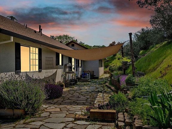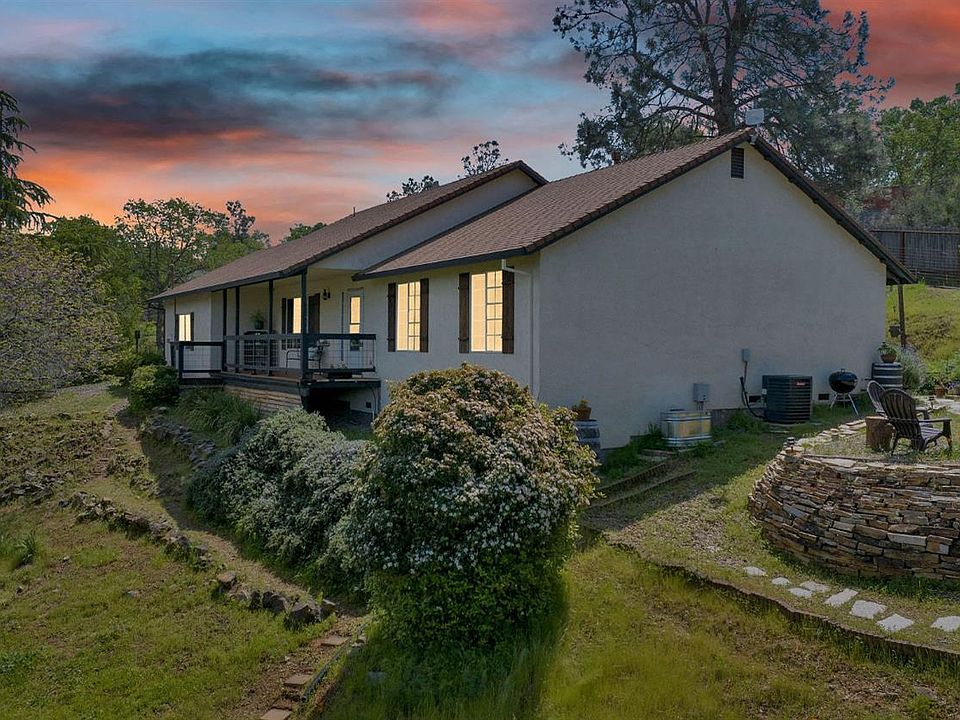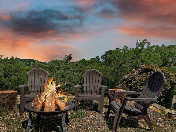 Back on market, no fault of home. Buyers did not get their home pending. The country life awaits, minutes from lakes, golf, wine-tasting, and all the adventures Calaveras County has to offer! A lush and private, 1.02 AC lot offers space for all your pets, gardening, or recreational hobbies. Begin or end your day on the spacious covered front deck where you can sip your morning coffee or glass of wine to panoramic foothill views and spectacular sunsets. Step inside to a spacious, 2,122 square foot home offering beautiful upgrades throughout! Brand-new luxury vinyl flooring stuns in the spacious and comfortable front living room with cozy corner fireplace, large picture window, decorative sconce uplighting and a vaulted ceiling. The open layout leads you to the dining room and bright kitchen featuring a custom walnut-topped eat-in island, matte quartz countertops, honey-comb backsplash, ample cabinetry, stainless-steel appliances, and beautiful lighting. Past the kitchen is the convenient laundry closet, half bath, and a family room with vaulted ceilings and built-ins perfect for all your media needs. Past the family room, another huge room with closet is an ideal 4th bedroom, in-law suite, or potential tenant unit with its French doors to the front. This would also make an ideal space to work from home or as a musician or artist's studio. Down the hall, two more generously-sized guest bedrooms, a full guest bath, and an over-sized primary suite with walk-in closet and large bath complete the home. Both bathrooms feature gorgeous granite countertops and upgraded fixtures. Brand-new HVAC and A/C offer peace of mind for years to come! Head out to the spacious and private flagstone patio area offering raised beds with drip irrigation for all your gardening needs. The expansive back-yard sitting area features a firepit, pergola, stock-tank pool with filter, brand-new adorable chicken coop, dog run/kennel area and fenced garden area. Bring all your fur babies & look forward to relaxing in your back yard oasis, enjoying the views & priceless serenity. Relax under the numerous oak trees in the lower yard in a hammock. Head over to New Hogan or Lake Camanche for fishing or boating. A great round of golf is just minutes away at La Contenta. Valley Springs offers all the conveniences you need, but is also just a short drive to the valley or the Bay for commuting. Come and see what foothill living is all about!