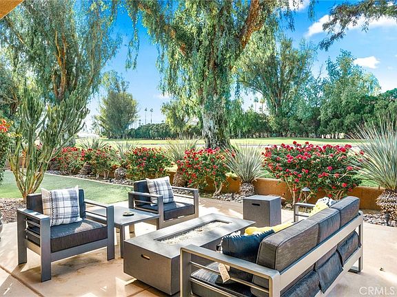 The beautifully landscaped front courtyard is a private retreat, complete with a sparkling pool, spa, fire feature, lounging areas, and misters for warm desert days. The backyard overlooks the fairway and features a built-in 4-burner BBQ, seating space and mature citrus trees that provide fresh fruit throughout the year.