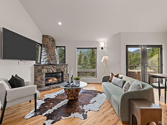 Welcome to this beautifully updated and well-maintained mountain contemporary home, perfectly positioned near National Forest. With the tranquil sounds of Cub Creek in the background and a spacious .80-acre lot full of wildlife and serenity, this Evergreen gem offers the lifestyle and setting you’ve been searching for. Step inside to discover an open and airy floor plan with vaulted ceilings and large windows that boast spectacular Evergreen views and flood the home with natural light. The generous living room is centered around a stunning Spanish-style stone fireplace with a custom mantel—ideal for cozy evenings or entertaining. The spacious kitchen features granite countertops, ample cabinet space, and flows seamlessly into the main living area. The main floor primary suite is a true retreat, offering dual closets, a relaxing soaking tub and separate shower. A convenient half bath is located just off the main living space for guests. Downstairs, the walkout lower level offers even more room to relax or host, with two spacious bedrooms, a full updated bathroom, and a cozy family room with a second fireplace for added warmth and comfort. Walk out to the newer two-story composite deck, where you can listen to the creek, watch for deer, and enjoy the peaceful mountain setting. An oversized 2-car attached garage is conveniently accessed through the lower level and offers abundant storage. Easy to Access from Brook Forest Road. Just minutes from Evergreen Lake, Maxwell Falls, and other Evergreen favorites. Sit back, relax, and embrace the best of Colorado living.