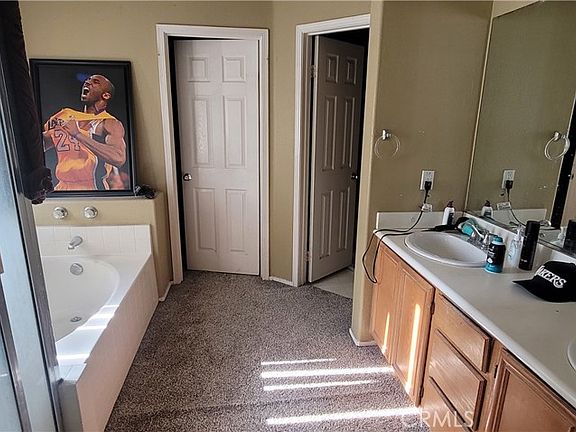 Amazing opportunity to buy in Eastvale Parkway close to Elementary School and in a wonderful community! This lovely home has 3 Bedrooms and 2 and half Bathrooms with 3 car garage. All bedrooms upstairs, Main bedroom has its own private bathroom with dual sinks, walk in closet, separate stand up shower with soaking tub, 2 bedrooms with carpet and 2 restroom upstairs. The ac unit is 4 years old, 1st floor has tile, upstairs and stairway is carpeted fairly new. Backyard has grass and cemented patio with ceiling fans. There are a few cosmetic repairs needed but with a little TLC this home will be lovely.