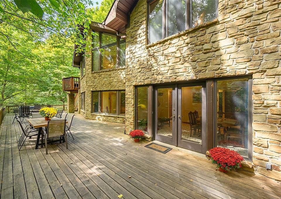 Escape to Stonehaven. This spacious tourist home is approved for up to 6 guests. Private lane leads to this sanctuary nestled in the woods. Brown County stone and wood exterior. Expansive decking outside for entertaining, dining or stargazing. Soak your cares away in the hot tub. Stunning views of nature from one of the many walls of windows. Great Room and Living Room for games, socializing or movie night. Wet bar. Chef's Kitchen with island and breakfast bar is well appointed to meet your culinary needs. Multiple fireplaces to entice the senses. Primary bedroom suite with sunroom and deck. 2 additional bedrooms. Bonus room. Built in cabinetry and window seat. Hardwood & tile floors. Attached 2+ car garage. Vacation or live here full time.