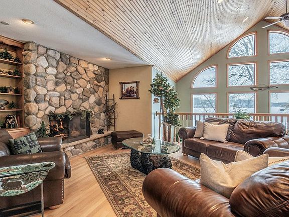 Watch the reflection of the changing seasons in the tranquil waters of recreational Fish Lake. Swim, ski, snowmobile, skate & more! Welcome to this amazing rambler located on a quiet no-through street plus rare no home to the north or directly across the street adds to the overall privacy. Approx. 115 ft of prime lakeshore with west-facing FLAT backyard to experience amazing sunsets. Open floor plan! Witness nature's treasures through the 2-story wall-of-glass from both main and lower level! The kitchen offers stunning HICKORY cabinetry. 2 fireplaces. Walkout. Huge deck with gazebo. Only steps away from Walden Park & lake trails! Why go north when every day can be a day at the lake!