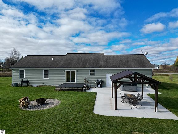 This lovely ranch home near Shepherd, Michigan, offers an idyllic mix of comfort and outdoor luxury on 1.25 acres. Built in 2005, with a contemporary design and a spacious 24x30 pole garage, ideal for extra storage, vehicles, or a personal workshop. Inside, the home provides single-story convenience, (3 bedrooms-2 bathrooms on the main floor) with the added bonus of a fully finished basement, perfect for an entertainment space, home gym, or family room, that also includes an extra large bedroom with it's own bathroom. Step outside, and you’ll find an inviting new concrete patio, complete with a stylish pergola that offers shaded seating, perfect for outdoor dining or relaxation. Adding a touch of luxury, a hot tub nestles on the patio, creating a private retreat for unwinding under the stars. This outdoor space is ideal for entertaining or simply enjoying peaceful evenings at home. The expansive yard completes the picture, offering plenty of room for gardening, play, or further customization. This ranch home effortlessly combines the charm of rural living with modern amenities, making it a standout property for those seeking comfort, space, and outdoor enjoyment.