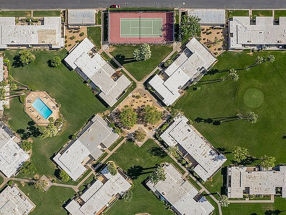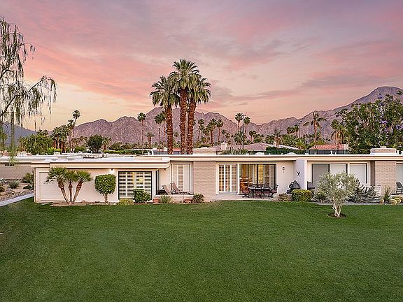 Please Text Christina at 714-501-8585 for a private showing. Welcome to 75650 Calle Del Sur in the gated community of Casa Dorado in Indian Wells. Just off Highway 111 between La Quinta & Palm Desert and in the heart of Southern California's Desert Resort Communities. This is a rare opportunity to own a property in this desirable neighborhood where homes rarely come on the market. The mid-century modern architecture with only one attached unit, makes homes in this community feel like single-family homes while providing privacy, low maintenance, and a lock and leave style lifestyle. The architectural design of this single-level mid-century modern home features flat-roof lines, and floor-to-ceiling picture windows with plantation shutters throughout. Showcasing two large primary bedrooms and a rare third bedroom with three full bathrooms and a detached one-car garage (car barn). With approximately 2,072 square feet of open and bright living space, this home is all about the outdoors. Three large sliders open to both a courtyard with an exceptional cactus garden and a back patio with incredible views of the desert mountains palm trees and an open grassy area. This charming residence has been owned by a family who hand-picked this location due to its perfect position and orientation that takes advantage of the daylight, sunsets, easy garage access, and a setback location away from Hwy 111 for quiet enjoyment. The homeowners have taken special attention to care for the home with true pride of ownership. It is now offered for someone to move right in, or go for a complete remodel as many others in the neighborhood have done to create your dream vacation haven. Newer water heater, furnace, fridge, and roof. Casa Dorado features four short par-3 golf holes and 4 small lakes situated around the grounds of this gated community. Six community pools, 4 hot spas, 2 tennis courts, expansive green belts, and a lovely clubhouse are all here for your enjoyment and entertainment. Indian Wells offers four world-class resorts, Indian Wells Golf Resort and Indian Wells Tennis Garden, a variety of cultural programs, and impressive resident benefits, and is very close to El Paseo with some of the best restaurants and shopping in the desert, and just minutes from Stagecoach & Coachella Music Festivals.