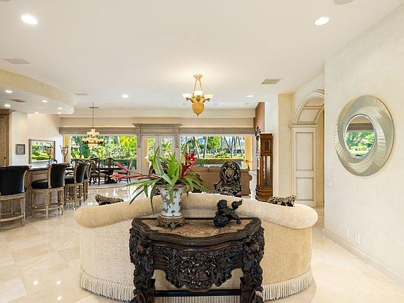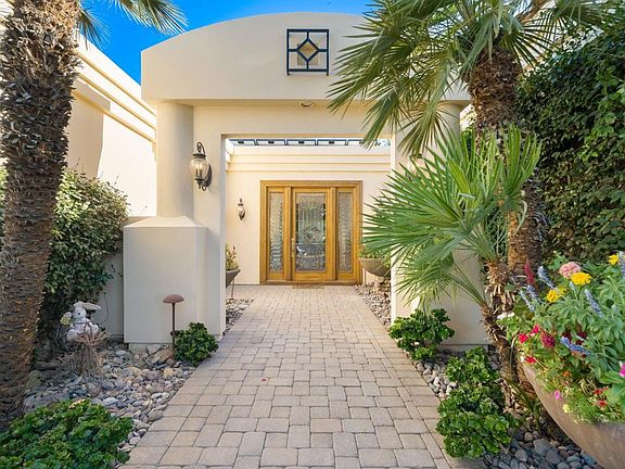Premiere Location! One-of-a-kind desert home offering the best views in Desert Horizons CC, awe-inspiring Panoramic South Mountain Views from Tee to Green down the 3rd Fairway. From the moment you enter this stunning home it emanates privacy and comfort. This Owned Solar home offers 4 bedrooms and 5 baths. Tastefully appointed and highly sophisticated from the pristine Limestone floors, 4 Fireplaces, custom cabinetry, custom shades, marble touches and soaring ceilings. You are welcomed into an expansive Living room, Dining room and Wet bar and a 2000 Bottle Wine Cellar. A chef's dream comes true in the Gourmet kitchen with spacious surroundings, warm-finished banks cabinetry, slab Granite counters and top-of-the-line appliances just off the kitchen is a Dining area and Great Room with Fireplace. Luxuriate in the Master Suite with spa-style bath, Fireplace, dual vanities and 2 walk-in closets. Guests can relax in the private Guest Casita or one of the 2 nicely appointed Guest suites, all offering en-suite baths. Custom Office and Bonus room. Step out to the expansive entertaining Patio and imagine cocktails on the Patio as you marvel over the captivating Mountain Vistas, Fairway and Green- with inviting Pool and Spa, a custom BBQ, Fire pit, Awnings and Heaters. A 4 car garage complete the home. Your picture-perfect lifestyle at this premiere Indian Wells location.Offered Furnished.