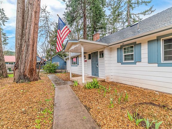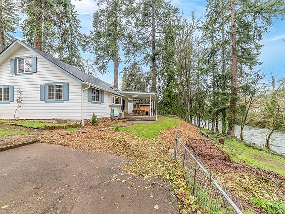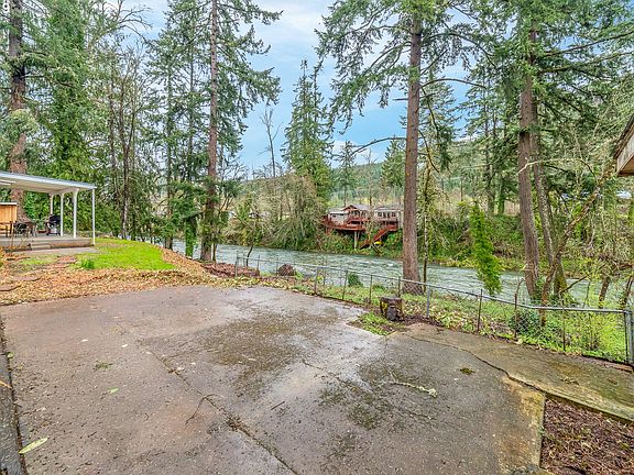 Amazing setting....large patio overlooking the Row River. This updated home has a new interlock roof, new ductless heatpump, new fireplace insert, new vinyl windows and all new whole house insulation. Bathroom has been fully remodeled. New 50 gal. hot water heater. The septic system was replaced 5 yrs. ago. This home is move in ready. Flood insurance is not required!