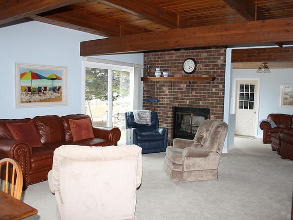 Amazing home full of surprises! Waiting for you behind a berm of pine trees approximately 6 miles north of downtown Oscoda, this home is a must see. Entering the home you are instantly greeted by a bright inviting kitchen featuring, among other things, a slide-in electric range and a snack bar. To the right is a tiled bath with a walk-in ceramic shower and a large utility closet. The kitchen opens to a great room with two doorwalls and a wood burning fireplace. The ceilings are pine and in trey-like sections