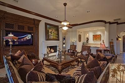 This stunning Tuscan home features breathtaking southern views of the Jack Nicklaus Signature South Course framed by the panoramic mountains. The welcoming courtyard features a dramatic stone fireplace that connects the private guesthouse and the main home. The grand great room showcases intricate built-ins, stained crown moulding, a fireplace and stone flooring. A custom oversized hood anchors the gourmet kitchen that features a cozy eat-in nook along with a formal dining room. The outdoor entertaining space is fabulous with fire and water features, an azure pool and spa, covered living room and a stunning built-in bar and bbq. The peaceful master retreat features a fireplace and intricate built-ins along with a luxurious master bathroom. For guests, the home features a separate guesthouse with large sitting room and an additional guest room inside the home. The home office has beautiful built-in cabinetry and the home features an additional hobby/office space. Brokered And Advertised By: Toscana Homes, Inc. Listing Agent: Judith, Jamie, Linda, Charlene