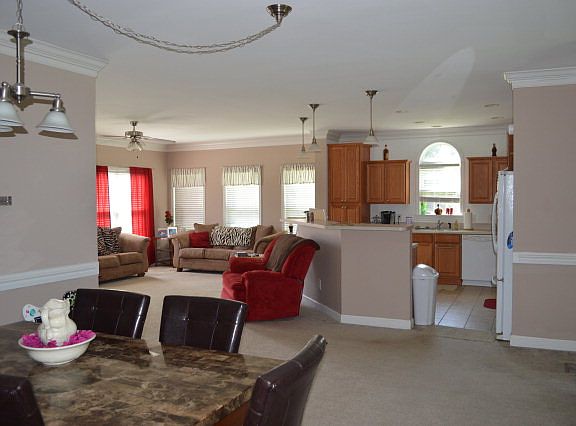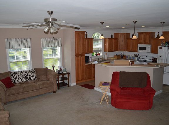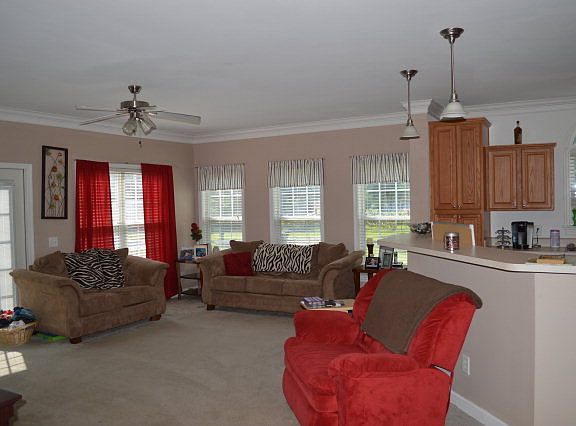 Enjoy the peace & quiet in the 3 or 4 bedroom country home! Open floor plan w/permanent stairs to floored, expandable attic. Bathrooms have tile floors, master bath has dbl. vanity, garden tub, separate shower & huge walk-in closet w/a closet inside! Center island/bar in kitchen w/pendant light, TREX deck on back, lots of closet space. Front room could be bedroom, office, LR, etc. - your choice!