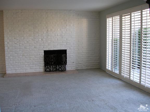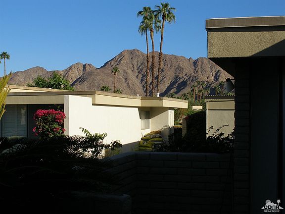 Classic Indian Wells Mid-Century.Huge living room with wall of glass overlooks wonderful water feature and large patio offers beautiful mountain views and afternoon shade.Two spacious bedrooms, two large baths and a cozy fireplace.Nicely updated with solid surface counters,stainless oven and micro,cooktop and custom shutters.There is a golf cart garage(would make a nice studio or work out area).Great community amenities with 4 hole pitch and putt golf, putting green,pools,spas,tennis and nice clubhouse.As an Indian Wells resident you enjoy discount golf at Indian Wells Resort, use of the Hyatt health club and much more. Move right in and start enjoying the Indian Wells lifestyle now!