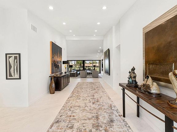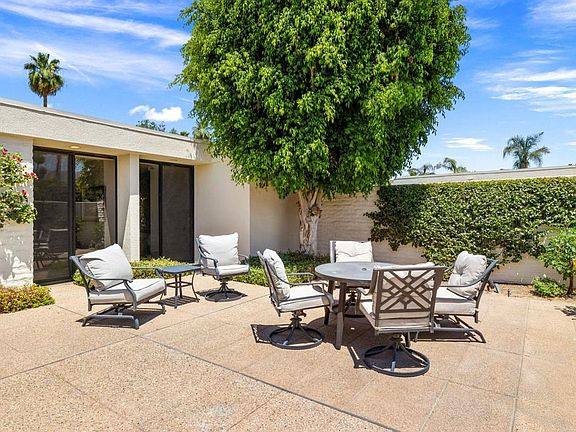 Golf membership included at 50% off and a fully paid off solar! Step into luxury living at its finest with this completely remodeled masterpiece nestled in the heart of Indian Wells. Boasting sophistication and style, this 4-bedroom, 4.5-bathroom home has been meticulously redesigned with elegant modern touches throughout. As you enter the private courtyard, you're greeted by an open floor plan that's perfect for entertaining family and friends. The 3,307 sq ft of living space features exquisite white porcelain tile, cathedral ceilings, and abundant natural lighting, creating a truly magnificent ambiance. The primary bedroom and bathroom are a haven of luxury, featuring one of the most impressive walk-in shower designs in the desert, a spacious walk-in closet with patio access, and dual vanities adorned with matching stone finishes found throughout the home. Each of the other 3 bedrooms offers spacious accommodations with en-suite baths and walk-in closets, while an elegant powder room awaits your guests in the hallway.Step out onto the back patio and soak in the breathtaking fairway views and incredible sunsets, creating an idyllic backdrop for relaxation and enjoyment. Additional features include a 2-car garage with an electric vehicle charging outlet and its own golf cart door, as well as a newly installed 22-panel solar system, offering both sustainability and energy savings. Call today to schedule your private showing!