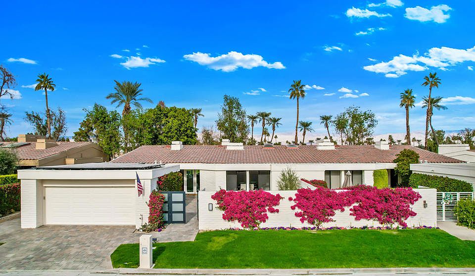 Experience the pinnacle of luxury living in this fully remodeled, contemporary 4-bedroom, 4.5-bathroom masterpiece in the heart of Indian Wells. This stunning property includes a fully paid-off 22-panel solar system, offering unmatched comfort, style, and sustainability. Enter through a private courtyard into an expansive 3,307 sq ft open-concept design, perfect for intimate gatherings and grand entertaining. The home boasts exquisite white porcelain tile, soaring cathedral ceilings, and abundant natural light, creating a sophisticated and inviting ambiance.The primary suite is a sanctuary with an impressive walk-in shower, dual vanities with matching stone finishes, a spacious walk-in closet, and patio access. Each additional bedroom offers en-suite baths, walk-in closets, and ample space. A beautifully appointed powder room completes the interior. The outdoor living space is a true haven, featuring breathtaking fairway views, stunning sunsets, a fire pit, a bar area, and new pavers surrounding the property. Perfect for relaxation or entertaining, the back patio seamlessly blends style and comfort. Eco-conscious amenities include an electric vehicle charging outlet in the 2-car garage, golf cart access, and a solar system for energy efficiency. This fully furnished, turnkey home nestled in one of the desert's most sought-after communities. Don't miss this exceptional opportunity. Schedule your private showing today.
