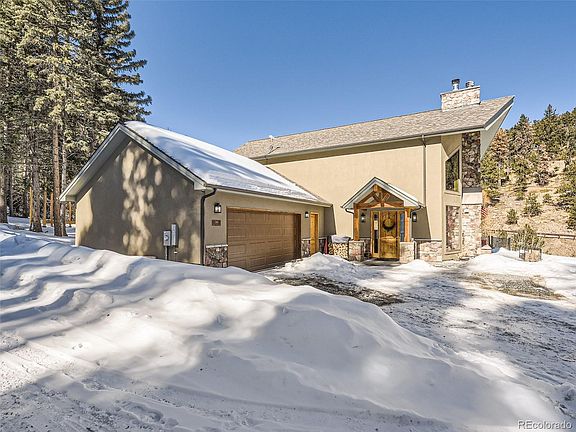 Nestled within the serene landscape of Evergreen, Colorado, 7569 Whispering Brook Trail is a modern gem, completed in November of 2022 and sprawled across 9.4 acres. The home features an open concept design with oversized windows that emphasize the seamless integration of indoor and outdoor living, complemented by breathtaking views. Its location offers exclusive access to Maxwell Falls hiking trail, and Arapahoe National Forest, making it a haven for nature enthusiasts. Equestrian lovers will appreciate the horse property and pasture land, enhancing its rural luxury appeal. Additionally, the property caters to the environmentally conscious with two electric car hookup spots in the garage. This sanctuary combines luxury, privacy, and modern conveniences, presenting a unique opportunity in one of Colorado's most sought-after locations.