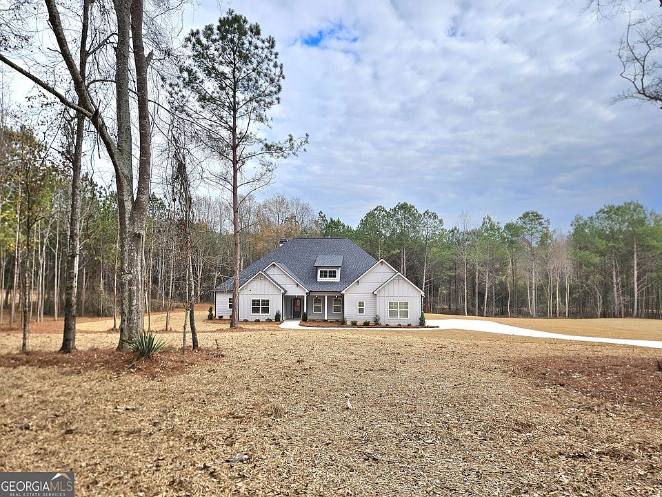 The Springer A - This 4 bedroom, 3.5 bath, 2700+ sq. ft. home is a true ranch plan. The open kitchen features granite countertops, tile backsplash, hardwoods, and a large walk-in pantry for lots of storage. The family room displays a stunning wall of windows and stone fireplace. Best of all, the large Primary bedroom has en-suite bath, with tile shower, dual vanities, garden tub, and a spacious walk-in closet. This plan includes an additional guest bedroom with en-suite bath, 2 bedrooms which share full bath, and a powder room, along with a covered back porch. 3 car garage and fireplace on the covered patio! This home is almost completed and can close in 30 days! This is a Moreland address, but it's less than 10 minutes to historic downtown Newnan and Ashley Park, Newnan's premier shopping and dining lifestyle center!