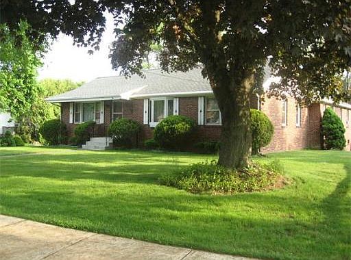 Many possibilities in this splendid Brick Ranch on a private & beautifully landscaped lot w/1-car gar under the main portion of the home, w/potential for 2nd car under the addition. This quality built home features 2-zone baseboard hot water heat, newer architectural roof, hardwood flooring in most rooms, enclosed paneled side porch with views of the backyard & wonderful curb appeal. A warm & welcoming home that has been very well maintained, offering a big kitchen w/ plenty of cabinets & all appliances remain w/ access from kitchen to porch, a very lovely & spacious living room w/ hardwood flooring, 4th bedrm could be a dining room. The addition includes an expansive room that has versatile uses; could be a family room or game room. There are two tiled full baths on the main level & handy basic bathrm w/free standing shower stall on the lower level, which also has work area,large finished play rm & a walk out basement. Brand new electrical service panel. A home built for a lifetime!
