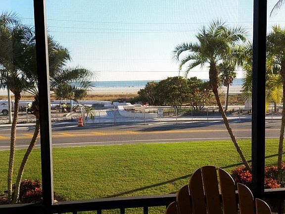MOTIVATED SELLERS. Great location at a competitive price and with excellent investment potential. Turnkey furnished airy condo with sweeping views of Siesta Beach, world renowned for its powdery sands, and Gulf of Mexico. Also watch awe-inspiring sunsets from large screened lanai. Tile flooring in living, kitchen and lanai. Carpet in bedroom. This is a gated, well-managed community with amenities including an Olympic-size heated pool, community room which owners and renters can reserve for functions, a game room, dry saunas for men and women, outdoor grilling area, exercise room. Laundry room opposite front door, with elevator alongside. Assigned covered carport, adequate visitor parking, extra storage. Siesta Village with its many restaurants and shops is an easy walk or bike ride away, and Sarasota's all-round cultural activities are within easy reach. On-site rental office to help with winter and summer rentals with proven income of $30-40K. Minimum one-week rentals.