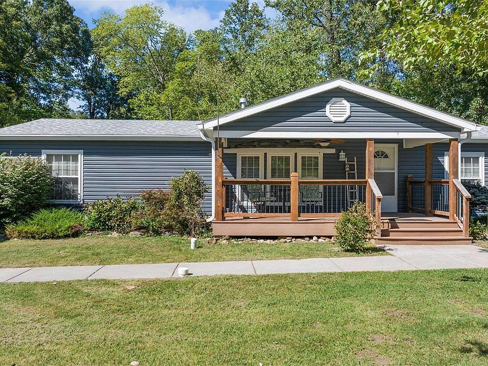 Fantastic 3 bed,2 bath 1400 SF manufactured home on a beautiful 2+ acre lot with detached 4 car tandem garage/outbuilding. Home features luxury vinyl plank throughout. Bonus, laundry/utility room off kitchen. The modern kitchen has plenty of cabinets and room for a chef to work. Enjoy the beautiful gas stone fireplace in the vaulted, spacious great room. The master bedroom has a large walk in closet and adjoining master bath. Split bedroom floor plan. Enjoy the outdoors on the maintenance free covered front porch or large deck off the breakfast room. The house is on a lot with mature trees and landscaping adding to your outdoor enjoyment. Plenty of privacy. The garage/outbuilding has electric and a concrete floor, great for vehicles, workshop, entertaining, or storage. Newer windows & slider door and AC. New roof. Recently stylishly updated home has neutral tones that will work with any decor. Winfield School District: K-2 is Winfield Elementary. 3-5 is Winfield Intermediate.