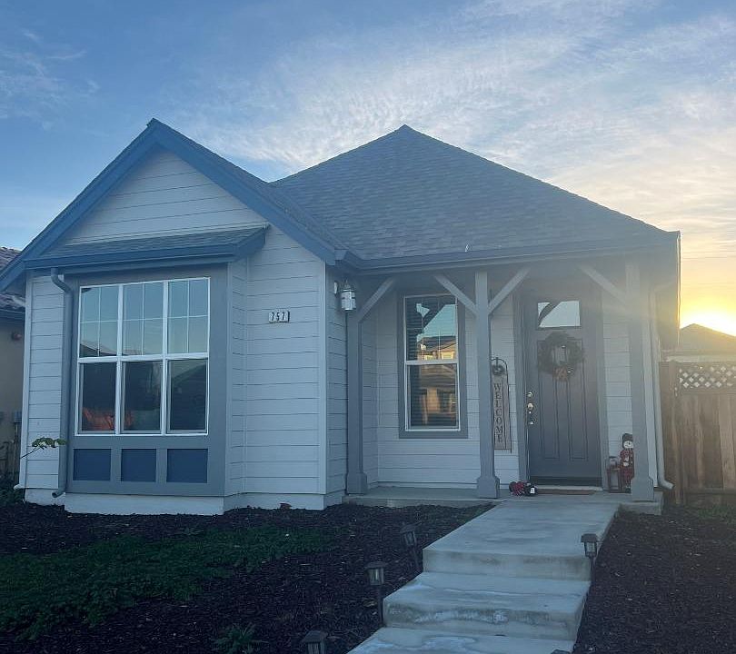 Welcome Home to this almost new Beauty! Located in Mills Ranch on a wonderful street of new homes! Single story, great floor plan- featuring a vaulted ceiling in the living dining combo, room at entrance! Kitchen is well plotted with a really nice large island- you can set barstools and eat in the kitchen. Indoor laundry room with both electric and gas outlets. The two car garage is in the rear of the property with a two car driveway, assessible from the rear ally. Don't miss out on this opportunity- the home shows beautifully!