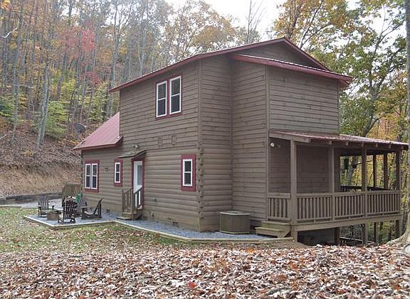 Beautiful Log Cabin with Poplar Bark siding located on a 1.1 Ac. very private lot in Jackson County. This home has 3BR, 2.5 Baths, wrap around deck with real laurel branch railing pickets , outside sitting area with fire pit, metal roof, vaulted ceiling in LR, Open floor plan, partial basement (could be finished!) lower deck, heat pump, very convenient to Western Carolina University or downtown Sylva, approx. 15 min. to Waynesville, home was built in 2011.