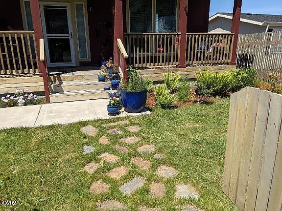 One-of-a-kind showcase 2019 Clayton Homes 3bed/2ba manufactured home on full concrete slab, factory upgrades throughout, on ocean view lot, one block from 804 Trail and ocean access. Attached 2-car garage. Efficient 8'x8' private office with large windows (partial ocean view), built separately, adjacent to patio. Concrete walk, garage floor, ocean view patio. Flagstone path to covered front porch. Granite countertops, upgraded appliances (includes commercial grade oven in kitchen island). Coffered ceilings, recessed lighting with dimmers. No pets, smoking or tenants in one-owner home. 3rd bedroom in use as studio, but easy to convert back. Will review offers 5/31 after 5pm. Sale cannot close prior to 07/27/2021. Masks required; sanitizer provided