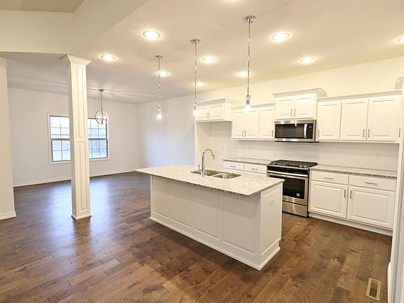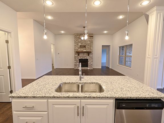 Open Sat & Sun 12-4 New! iNCLUDES PRIVACY FENCED BACKYARD! all brick/stone walkout basement in Nixa! 4 Br's , open floor plan with floor-to-ceiling stone fireplace. Engineered,hardwood floors in liv/din/entry/hallways..Master bedroom and office,study or BR (has closet), on the main level with 3 BR's in the walkout basement. , family room, and abundant storage. Planned colors are custom built, white cabinets, stained cabinets in baths& ,laundry. Valle nevado granite,nickel fixtures and hardware, light,airy white paint on the main level and gray in the walk out. Gas range in kitchen, wooden closet and pantry shelving. Nixa schools, irrigated ,sodded yard, spacious covered deck and patio.