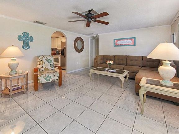 Roof 2015, A/C 2014, Hot Water Tank 2016, Upgraded Electrical 2015, Septic passed inspection 2015, 73 ft parking pad, updated kitchen/flooring/crown mldgs, fresh paint and move-in-ready! Originally a 2/1, the large addition is currently used as the master bedroom with compact ensuite bath. This same room has its own entry from the parking pad and entrance to the lanai. It has definite mother-in-law suite or family room potential. Bathrooms have upgraded tall vanities. The lanai is tiled and private. Minutes away from local parks, trails, boat launch and beaches.