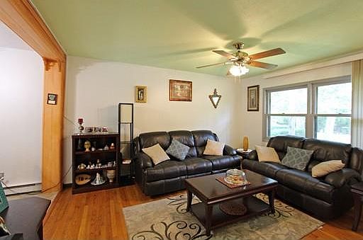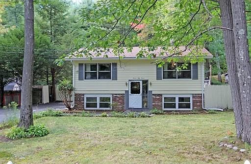 Updated raised ranch set off the road in a very convenient location 5 minutes to downtown, the highway, and Easthampton with plenty of space both inside and out. Well maintained and updated kitchen with tile floors, stainless appliances, new countertops, and tile backsplash open to dining area. Spacious living room with hardwood floors. Down the hall are two good-size bedrooms, including the master bedroom, and an updated bath. In the lower level are 2 more bedrooms plus a 2nd casual living or family room, all with ample natural light, and another updated bath with tile floors. A handy separate laundry room and storage room are also located in the lower level. From the kitchen/dining room walk out to the huge deck and fully fenced, beautiful backyard abutting woods. This house boasts a new roof, double pane windows, much new fencing, fresh exterior paint, and newly paved driveway in 2013.