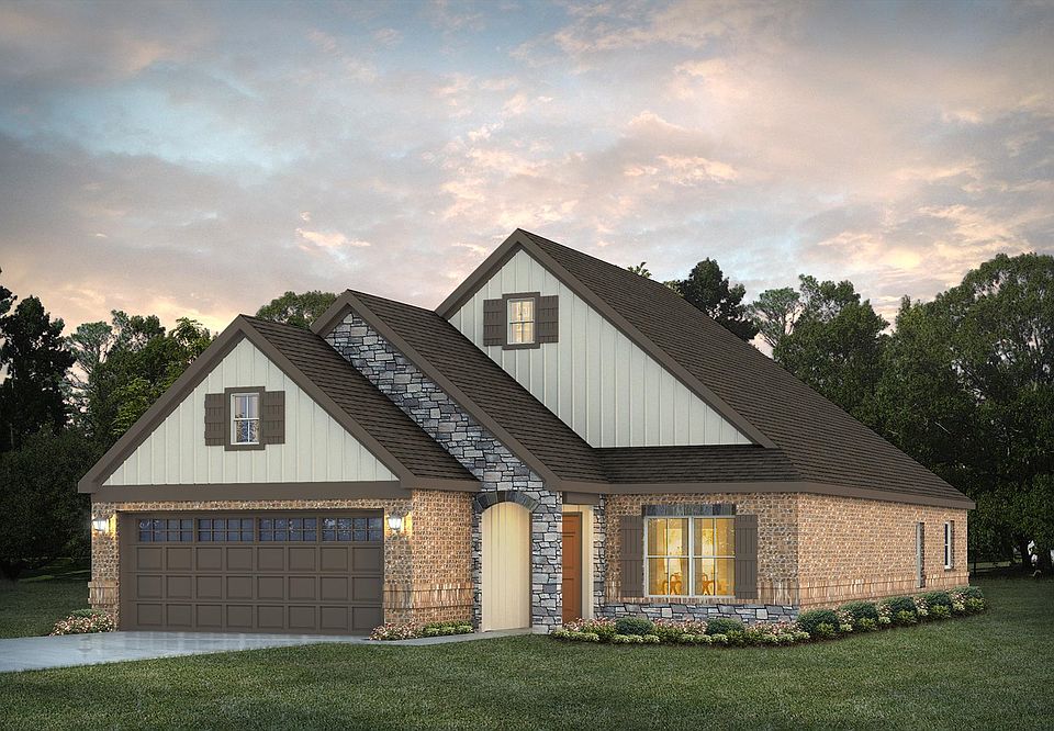 Constant appeal and elegant definitions are found in the "Hampton" for those calling for luxury and comfort. Vaulted beamed ceiling and dramatic custom columns in huge great room suggests space, and excellence in finishes. Custom fireplace allows an even greater level of amenities while offering sheer enjoyment of an evening fire on those cooler nights. Huge kitchen's attention to custom cabinetry, upgraded stainless steel appliances, and granite counter tops, are sure to enhance cooking and eating experiences. Retire to the master suite that exudes privacy and use of space and take advantage of the well thought out master bath with every amenity for speedy starts for the day. From something as simple as a laundry room that does not abut any bedroom or living area, this plan provides plenty of comfort.