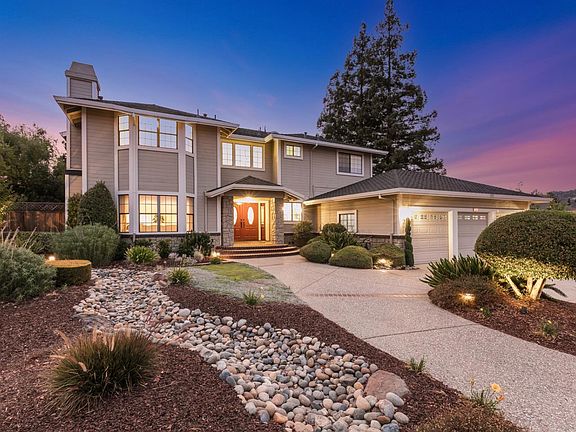 Stunning French Country Home in prestigious Almaden Valley. Situated to provide unbelievable views of the sunset and valley. Manicured front landscape perfectly designed with drought tolerant appeal. This stunning masterpiece has been built with exquisite design for comfort living. Living room with wood burning fireplace and mantel enhancements, spacious downstairs bedroom with French doors to private deck. Oak wood flooring, crown molding, window shutters, beautiful wall textures and paint. Custom built center Island with four gas stove burners and granite counter tops, custom cabinetry. Grand Bonus room perfect for Entertaining, Media or Exercise room. Private office suite. Master Bedroom with wood burning stove, walk-in closet, Jacuzzi, custom shower. Entertainers backyard features; Black Bottom Pool & Spa, Built in BBQ, Expansive deck, KISS system, tree barrier, Half Court - perfect for large gatherings. Top rated schools- Graystone, Bret Harte & Leland HS. A must see!