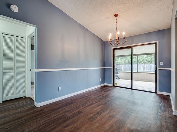 This large home located in a quiet NW Palm Bay neighborhood is ready for a new family! You'll love the separate living areas, especially the family-room with the wood burning fireplace. Both the dining room and family room have sliding glass doors to the beautiful tiled Lanai. This home also features a split floor plan, a huge master suite with a large walk in closet, updated bathrooms, new flooring, fresh exterior paint, newer HVAC (2018), city water, great neighbors, and much more!