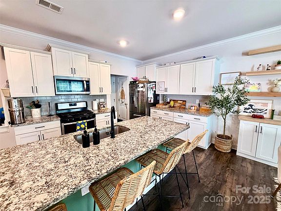 Discover modern elegance and cozy charm in this 3-bedroom, 2.5-bath townhome in Ivy Ridge. On a quiet cul-de-sac, it offers peace in a vibrant neighborhood. Built in 2020 and upgraded, it features style, function, and low-maintenance living.Enter the open-concept main level: custom fireplace in living room with cabinetry and shelving for relaxation or display; dining area with updated light fixture; half bath with new vanity and trendy wallpaper.Upstairs: three bedrooms including spacious primary suite. Contemporary vibe throughout.Community amenities: clubhouse, pool, pickleball court. Easy access to shops, dining, and Clover schools. Gateway to effortless living. Don't miss it!