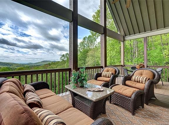 Minutes from town, your views are the beautiful Southern Appalachian mountain ridges from virtually every window & deck. The floor-to-ceiling stone fireplace is a focal point in the great room with its wall of French doors opening onto the covered deck. The kitchen is handsomely appointed with Ivory Coast granite countertops, Alder cabinetry, & stainless appliances. Spacious master-on-main bedroom with French doors opening to deck with amazing views. Granite dual-sink countertop, garden tub and designer tile shower in the en-suite master bath. The guest level includes a spacious bedroom with a view, full bath, & a large gathering room with a wall of French doors opening to a large covered deck. This 3 bedroom 3 bath home also includes a bonus room with a view, to use as an office, a media room, or for extra sleeping. Walk-in closets in all bedrooms, surround-sound system, solid wood doors, quick-winterizing capability, Generator, whole-home dehumidifier, encapsulated crawl space.