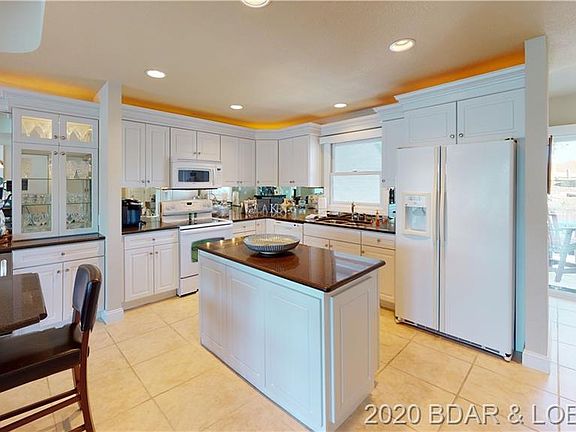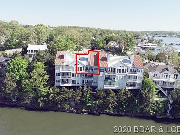 Unique exquisite high-end turn-key condo in small private complex in perfect location in the heart of Osage Beach, offering main channel views that are second to none AND your view of the State Park will always be trees/never developed. This spacious 3 BR/3BA has it all from designer furnishings to custom cabinets & quartz countertops, to unique lighting & a beautiful open floor plan that allows you to enjoy the views while entertaining your guests. You will love the custom built-in bar area w/glass front cabinets & wine cooler plus large island seating area. Guest bedroom on main level has cozy window seat w/cedar-lined storage underneath.Upper level loft offers a second living/den area along w/a private guest suite that will make your guests never want to leave! New decks 2011-replaced down to subfloor & new Schluter drain system & powder coated aluminum railings were added. Owned 16x44 boat slip in Moorings marina is INCLUDED along w/PWC slip. This is the perfect package,a must see!