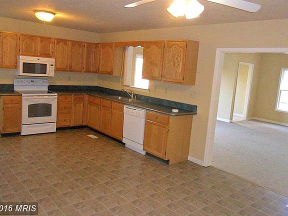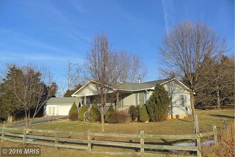 2 bedrooms and den (room with no closet) 3+ acre farmette 6 miles off I-81. High vaulted ceiling in family rooms, extra large kitchen, oversized two car garage and metal structure for extra vehicles. Separate laundry room. Three year old appliances. . Fantastic views.Family room carpet to be replaced with tan carpeting. Some painting and repairs underway. Also for sale.