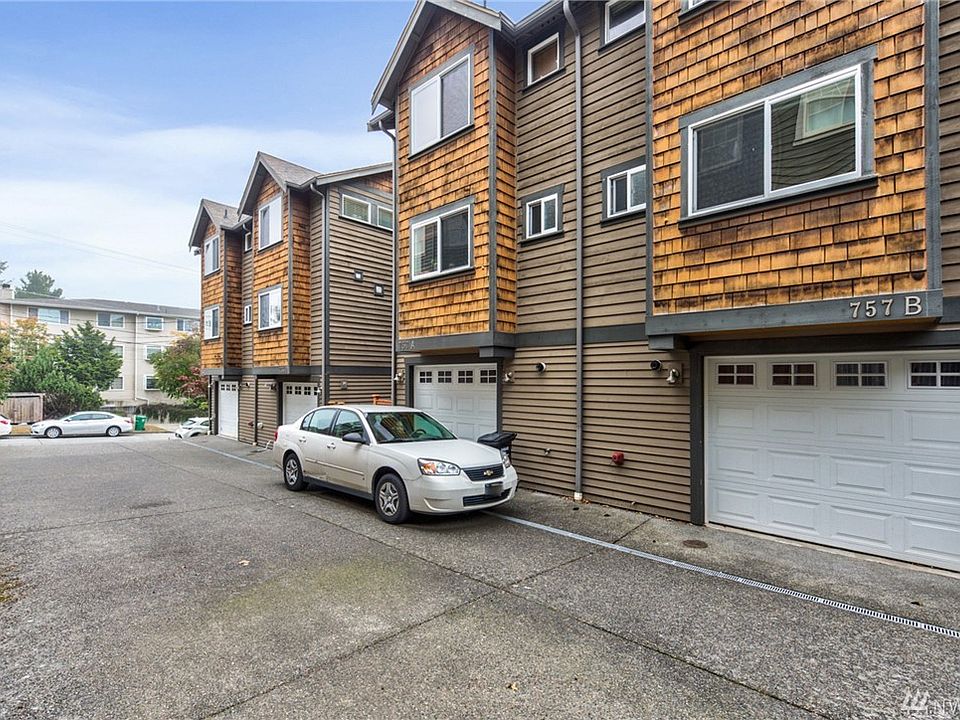 Huge reduction! Spacious end-unit townhome located in between Greenlake and Greenwood. 1 Guest bed/Den + shower bath in entry level. Granite counter-top & Stainless steel appliances in kitchen. Living area with gas fireplace and mini split A/C. Upper level master bed with good size closet. Newer washer&dryer, blinds and paint. Private fenced yard with patio. Park in the garage or in front of the garage. Convenient location, minutes to downtown Seattle & close to Greenlake.