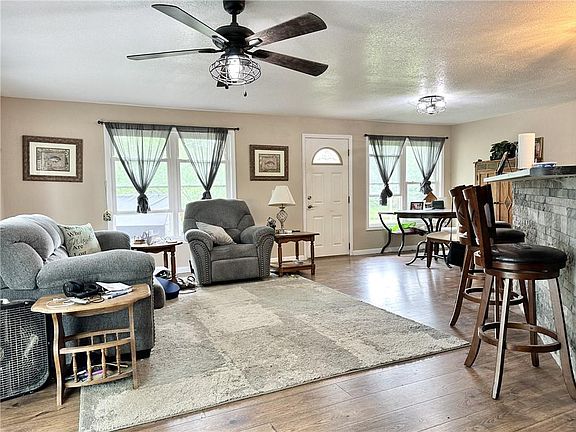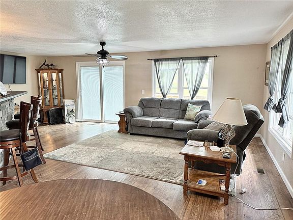 Rare opportunity to own a small acreage at this price! Come take a look at this ranch style home that has had extensive remodeling done inside and out. New siding, windows, electrical, plumbing, sheetrock, insulation, kitchen, flooring, and more, all within the last two years. With over 1300 sq ft, the home offers 2 bedrooms, 1.5 bathrooms, open concept living room, dining room, and kitchen with newer appliances, and a mudroom/laundry room. Two decks overlook the picturesque 5 acres that includes a stocked pond, a smaller fenced in area, a nice storage shed with a concrete pad and RV hook ups beside, as well as an additional storage shed and an older cellar. This little piece of country is located at the edge of a small quiet rural community.