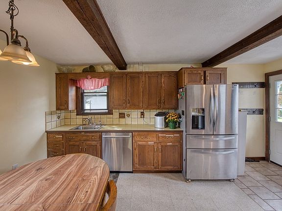 - Features: Beamed Ceilings, Flooring - Stone/Ceramic Tile, Flooring - Vinyl, Dining Area, Pantry, Stainless Steel Appliances, Peninsula