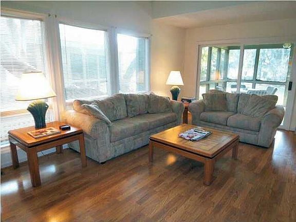Best value on duplex in resort!Outstanding views from villa of golf course and lagoons of #8 fairway and green. 3 bedroom, 2 bath, nicely furnished with screen porch. Great sun exposure all day long. Take a leisurely walk to Marina or Beach. Hardwood floors in living room add to the charm along with wood burning fireplace. Private master bedroom and bath with jacuzzi. Surrounded by large live oaks and Palmettos. This is a must see. Won't last.