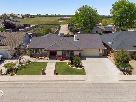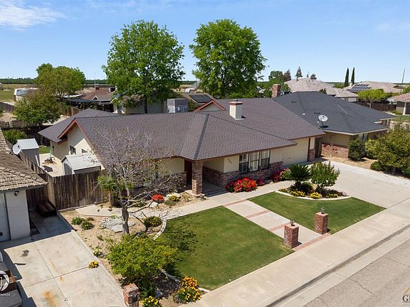 Beautiful and Well Maintained Home in Shafter! This 3 bedroom + office, 2 bath home has nice curb appear with lush landscaping, stucco and brick exterior, and a concrete with brick inlay walkway leading to the welcoming double door entry. The interior features vaulted ceilings and ceiling fans throughout, plantation shutters, a floor to ceiling brick fireplace in the great room, large kitchen with breakfast bar, tiled countertops with decorative tile backsplash, and French doors off of the dining area. The spacious master suite includes dual sinks in the bath, and a convenient door leading to the back patio. Large indoor laundry room has lots of room with cabinets and a countertop. Nice covered patio and large concrete area in the backyard which is great for entertaining, concrete lawn borders, beautiful mature landscaping, and a newer roof. This fantastic home is in a prime Shafter location close to schools and restaurants.
