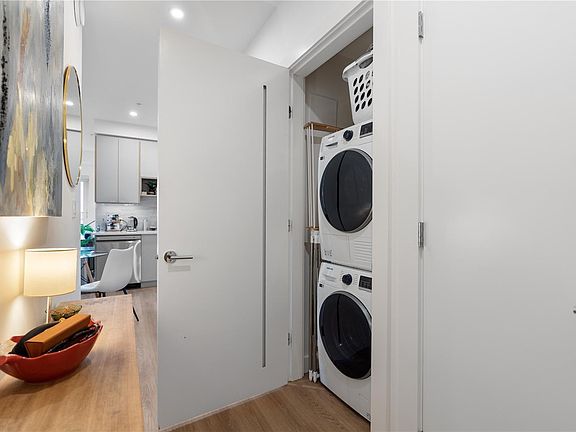 Welcome to bright corner unit junior one-bedroom floor plan with ocean views at the final phase of the Railyards! Situated in Vic West along the Galloping Goose trail. This home offers quick access to downtown Victoria by car, bike or walking. As you enter you’ll be greeted into this 2023 built home with an open concept floor plan that is flooded with natural light. The entry offers tall ceilings and multiple closets for storage and laundry. Continue on to the kitchen equipped with a full size LG appliance package and plenty of cabinet space making this an ideal floor plan for those who love to cook. Next, enter your living room with water views of the Inner Harbour! The bedroom offers a space tucked away for your evening retreat. A generous sized balcony leaves plenty of space for your patio furniture and outdoor living. This home comes with additional storage in the underground parking as well as a designated parking stall that is roughed in for EV! Book your viewing today!