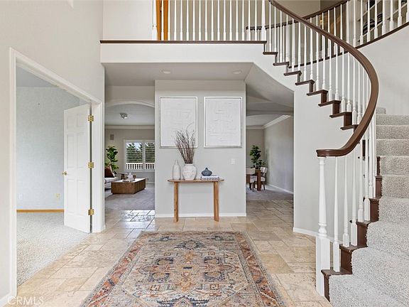 As you step through the grand entrance, you’re greeted by soaring cathedral ceilings, abundant natural light, and a timeless staircase that anchors the home’s design. The heart of the residence is a remodeled kitchen, ideal for both everyday living and entertaining. Dual staircases provide a seamless flow to the upper level, further enhancing the home's elegant layout. The large 3-car garage, featuring epoxy-coated flooring, includes an attached workshop, perfect for the car enthusiast or hobbyist.