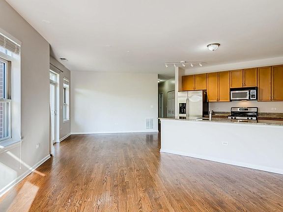 University Village 3 bedroom, 2 full bath condo with parking! Tons of windows in this bright, spacious, high ceiling, and modern floor plan corner unit! Freshly painted, new blinds, curtains, light fixtures, hardwood floors throughout with brand new carpeting in two bedrooms. Kitchen boasts higher end finishes with granite countertops, 42" cherry cabinets, and stainless steel appliances, large breakfast bar/island that can easily accommodate at least five stools. Open concept living, perfect for entertaining and having company over. Plenty of counter space for preparing and serving all your meals. Large master bedroom with hardwood floors and own private en-suite. Two generous sized bedrooms located down the hall. Private outdoor balcony with TREX flooring, newer in unit laundry, and parking included in the price! Prime location, just south of red hot West Loop, Little Italy, and Greek town, next to the medical district and UIC, close to Rush University, Pilsen, major highways, and public transportation. -Move-in Fee: $250 -Deposit due upon lease signing -No smoking -No pets -Renter pays for utilities