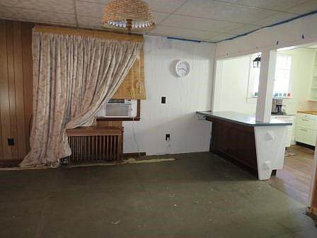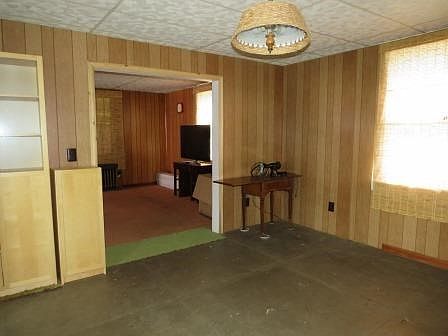 Don't be fooled by the exterior of this home, as inside you will find and updated kitchen with white cabinets and counter seating , a dedicated dining room with blond cabinets included, a spacious living room with fireplace and a fully enclosed sun porch all on the first floor. The full basement provides an integral garage where you can enter from the back of the home. Outside discover gardens and a garden shed for storage.. Seller leaving boxes of laminate for floors to be completed by the Buyer. Steam heat with registers. Seller selling "AS IS", with all appliances and furniture included.