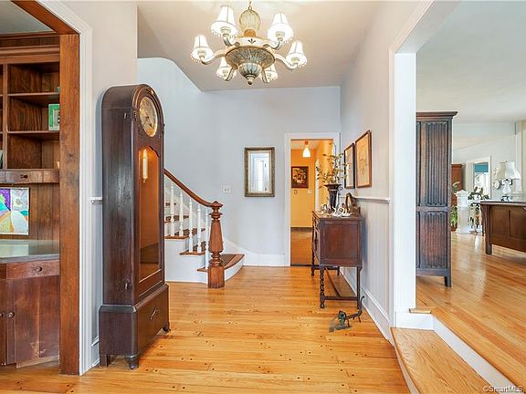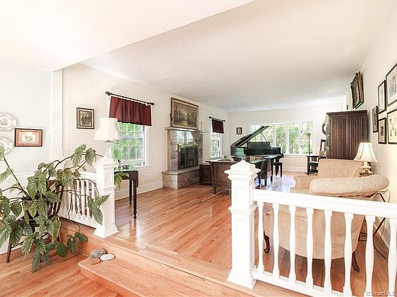 This beautifully maintained 1865 Antique Colonial has been thoughtfully updated over the years, while retaining its original charm, character, & quality craftsmanship. Situated on over 7.5 acres complete with large barn & peaceful pond, enjoy your seclusion as this property is surrounded by an additional 112 acres of privately owned land. Stepping in through the front entry & into the foyer, the living & dining rooms are to the right with hardwoods throughout, a fireplace, & access to the den with an additional fireplace & built-ins. To the left of the foyer, find the family room with warm wood & exposed beams, & a 3rd fireplace surrounded by stone veneer. The custom David Hecht kitchen & eating space are sun-drenched, encompassed by windows & with tile flooring throughout. Follow the staircase up to the sunlit landing, with more hardwoods throughout the 2nd floor & bedrooms in all 4 corners of the home. The large master has plenty of closet space & access to a full bath. The 3 additional bedrooms are generously sized, have custom built-ins, loads of natural light & share an additional full bath. The walk-up attic is completely finished & is a massive space with vaulted ceiling, potential 5th bedroom & 1/2 bath. The home was freshly painted last summer, & the roof, furnace, hot water heater, well pump & softener are all less than 15 years old. This unique, one-of-a-kind home has been lovingly cared for, and is ready for the next fortunate owners to carry on the tradition!