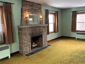 Stone Cape Cod on a big lot ~ 2 Bedroom ~ 1 bath ~ plus - ( 1/2 bath in basement needs some upgrading ) almost 3/4 of an acre ~ Built in 1948 ~ well built home ~with Hardwood floors under the carpet ~ Stone Fireplace in large living room ~ Plenty of off street parking ~ Roof - Approximately 5 years old ~ replacement windows ~ Home selling As -Is ~
